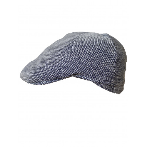 Gemaakt van katoen en linnen met een katoenen voering  in een donkerblauw gemêleerde stof. Door het 6 puntige model waarbij de klep bijna niet zichtbaar is geeft deze pet een hippe look.